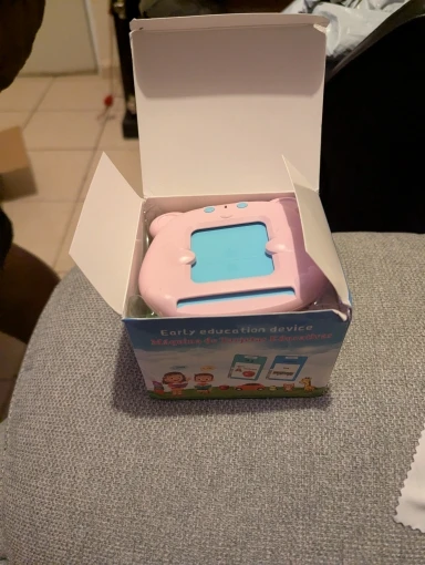 llegó en buenas condiciones, buenos materiales, igual claro es de tenerle cuidado al trato de los niños pero cumple perfectamente con su finalidad, enseña palabras en inglés, español y algunas tarjetas tienen el sonido del animal u objeto. a los papás nos encantó y a la bebé también